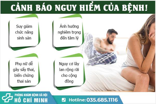 ➜Nguy hiểm hơn có thể gây ra nhiều bệnh nam khoa ở tuyến tiền liệt, bàng quang, dương vật, tinh hoàn, hoặc có thể biến chứng thành ung thư, có thể ảnh hưởng đến tính mạng.